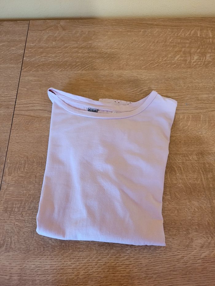 Tee shirt avec manches en broderie anglaise  10 ans - photo numéro 1