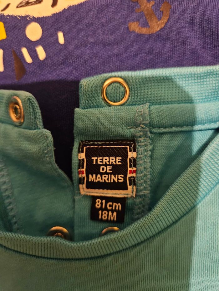 Lot de 2 tee-shirts, taille 18 mois, marque Terre de marins. Très bon état.