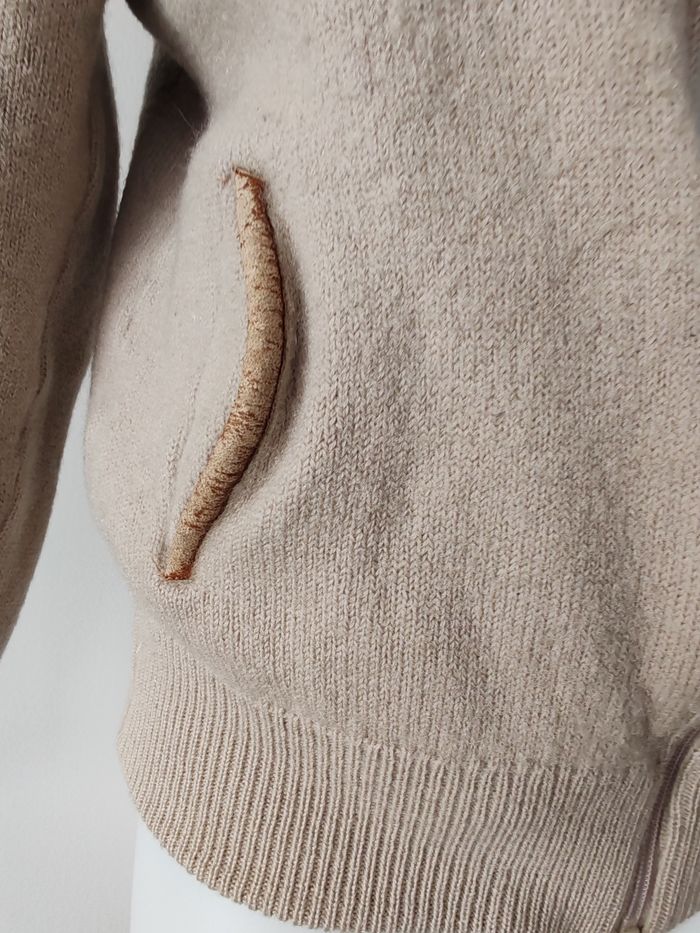 Très bon état, mis à part la décoloration au niveau de la poche, voir photos Largeur sous aisselles 50 longueur dos 58