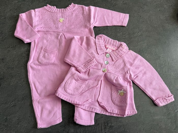 Très jolie ensemble combinaison neuve et gilet légèrement taché. 3 mois
