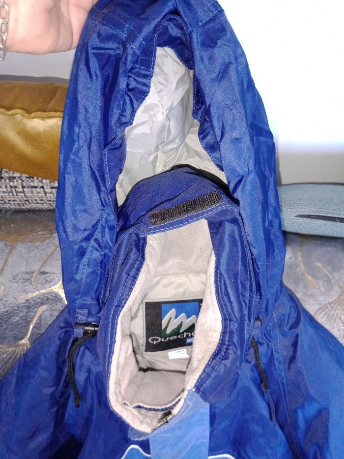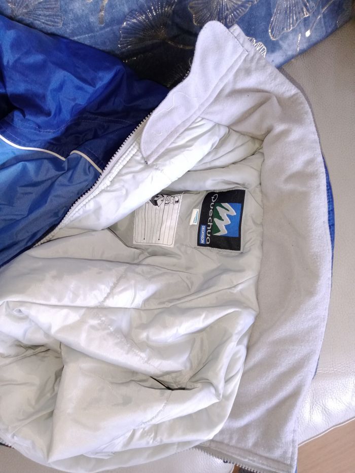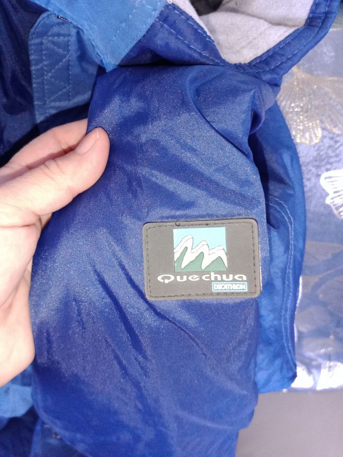 Combinaison de ski portée 2 jours lors d'un voyage scolaire Ma fille fait 1m70 et il lui va mais elle ne repart pas. Je pense que c'est parfait pour 1m65 Très très bon état Capuche peut se ranger dans le col Marque Quechua Plusieurs poches Bas pantalon avec fermeture éclair 2 Teintes de bleu