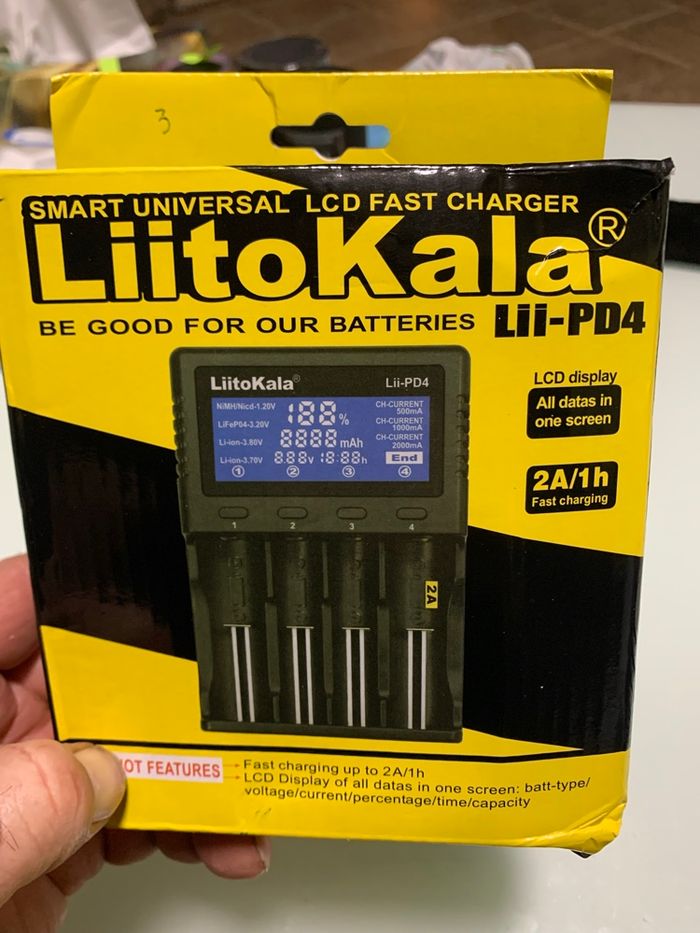 Écran LCD intelligent, affichez tous les états de charge, comme le volume de charge, le temps de charge, le courant, la tension, le type de batterie, etc. 2. Appuyez sur le bouton pour changer le type de batterie, il commencera à se charger 5 secondes après le réglage du type de batterie (3.2V ou 3.8V), 1.2V Ni-MH et 3.7V li-ion peuvent être détectés automatiquement, donc il doit être réglé pour seulement les batteries 3.2V et 3.8V. 3. Contrôle automatique du courant de charge 500mA,1000mA,2000mA (sortie 2A prise en charge de fente n°4 uniquement, prise en charge 1A max Ni-Mh/Ni-Cd). 4. Entrée multi-puissance : câble CA 110-240V 50/60Hz (inclus)/ adaptateur 12V 1A (sélectif), quatre systèmes indépendants de charge et de gestion de micro-ordinateur. 5. Charger le jeu automatique intelligent actuel de trois niveaux : 500mA /1000mA/2000mA). 2000mA est fixé uniquement pour l'emplacement n°4. 6. Identifier automatiquement les batteries Li-ion et Ni-MH et régler manuellement le mode de charge des batteries LiFePO4 et 3.80V li-ion (IMR) 7 Actualisez la batterie OV. Il ne charge aucune batterie de 1,65 -2,20 V (le courant de rafraîchissement peut être détecté uniquement) 8. Fonction de protection multi-sécurité de surcharge et de décharge excessive, court-circuitée, inversion de polarité et ainsi de suite. Il peut identifier intelligemment les batteries brisées avec beaucoup plus de sécurité.