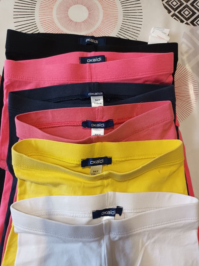 Lot 6 leggings courts, shorts Le noir à été racommodé (photo) Taille : 5 ans Marque : Okaïdi Couleur : 2 roses, 1 noir, 1 marine, 1 jaune ,1 blanc #moncinqansfilleemilie Les remises sont activées si plusieurs achats sont faits