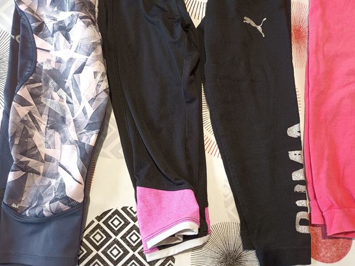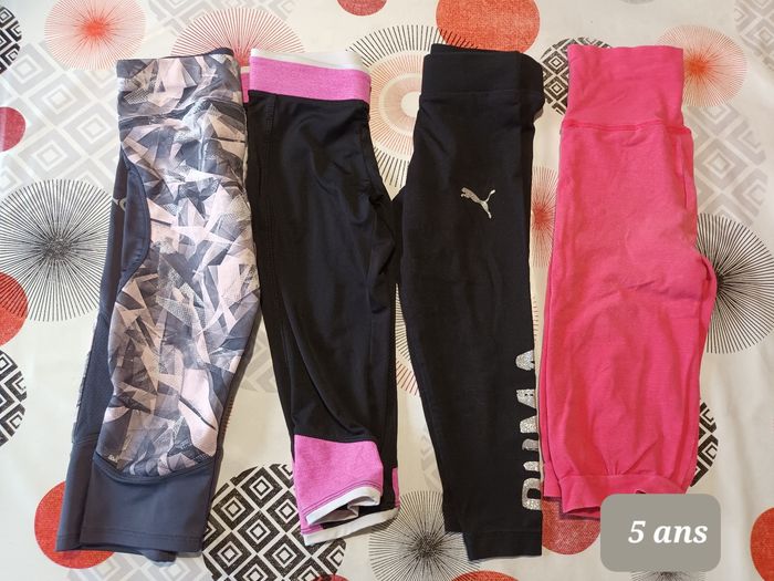 Lot 4 leggings courts, shorts pantacourt Taille : 5 ans Marque : 2 Décathlon, 1 Puma, 1 sport way Couleur : 1 rose, 2 noirs, 1 gris #moncinqansfilleemilie Les remises sont activées si plusieurs achats sont faits
