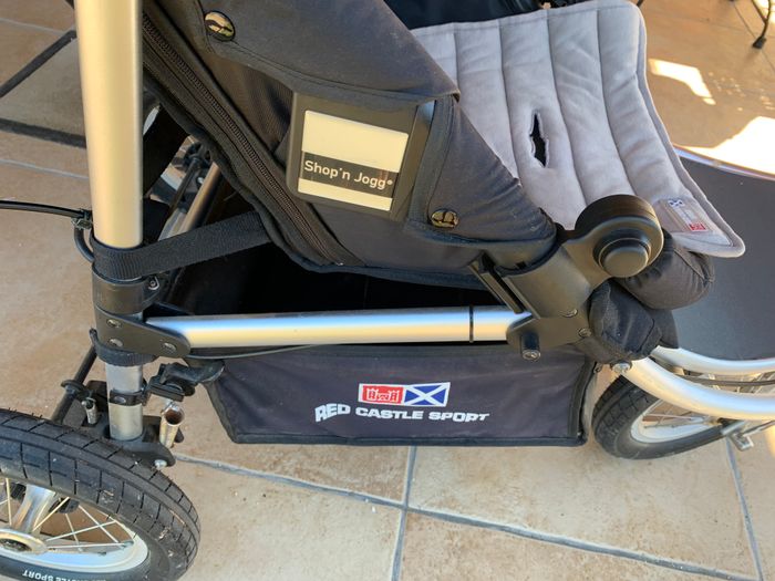 La poussette Shop n’Jogg Disc II de Red Castle est tout-terrain ,sa roue avant pivote à 360°et possède aussi une position fixe pour rouler en ligne. Elle est fabriquée avec des matériaux légers et résistants : l’aluminium pour le châssis et les jantes, et l’acier inoxydable pour les rayons et les moyeux des roues. Son dossier est inclinable sur trois positions, et le large repose-pieds est réglable en hauteur. Le coussin est réversible pour s’adapter aux différentes saisons. Très bon état Peu servi