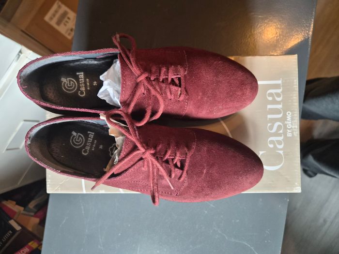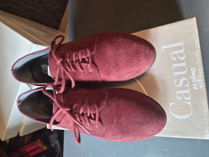 Derby en cuir bordeaux "Casual Gémo" en très bon état Taille 36 "O" - photo numéro 1