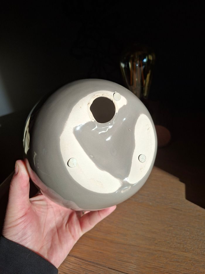 pomme décorative atmosphera en céramique couleur taupe gris diamètre approximatif 15 cm hauteur hors queue environ 13 cm