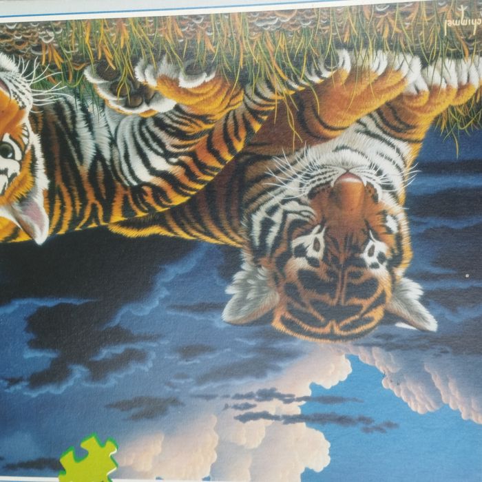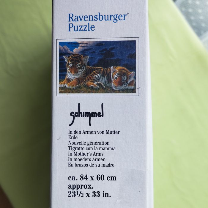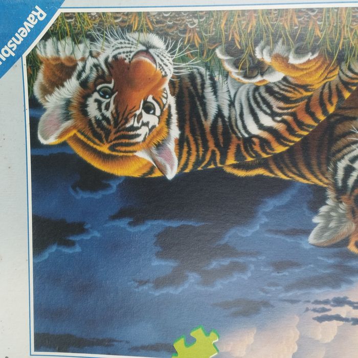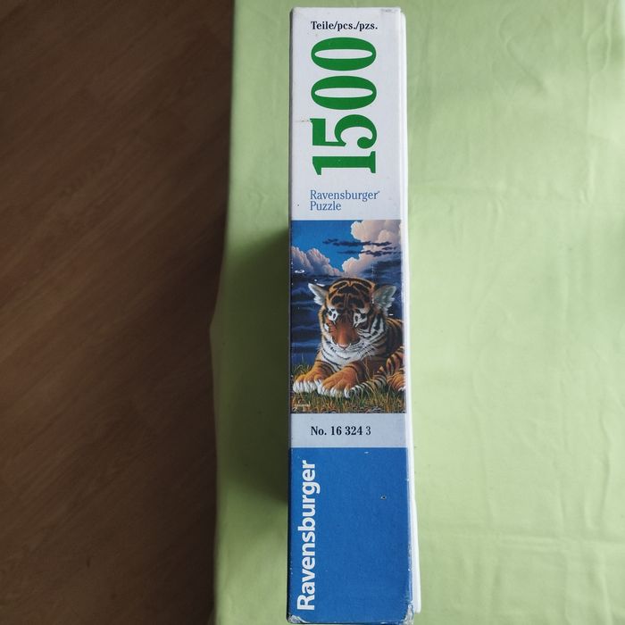 Puzzle 1500 pièces représentant 2 bébés tigres, de Ravensburger, dimensions 84cm X 60cm. Les pièces sont comme neuves, la boîte et un peu renfoncée .