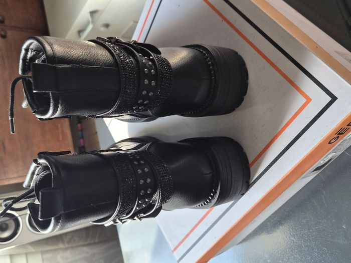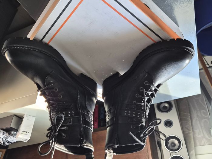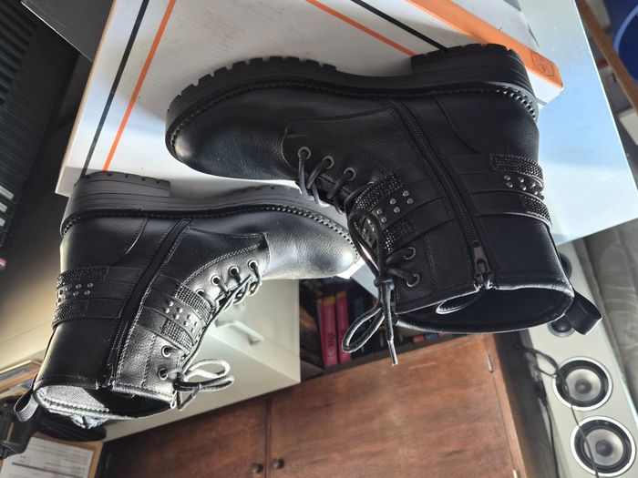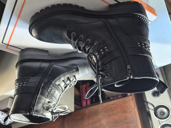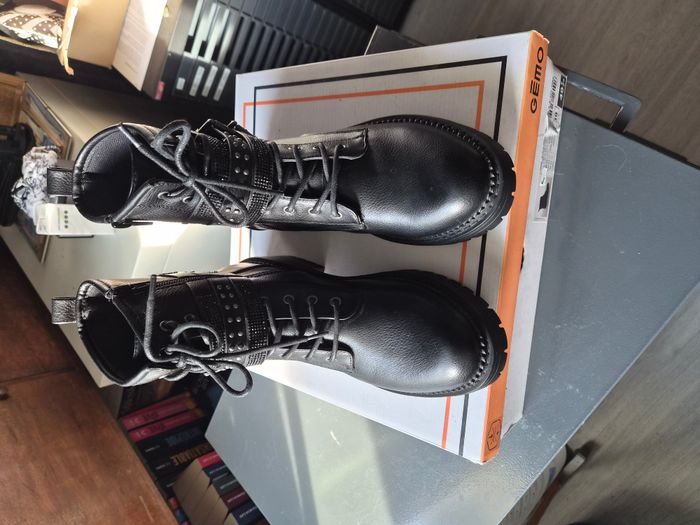 Jolies bottines "Gémo" Neuve semelle intérieur cuir. Taille: 39 Prix neuf: 49€99 (voir photo boite) Les deux premières photos sont générées par l'IA pour vous permettre de voir les Bottines portées. Il peut y avoir quelques petites différences avec les Bottines à vendre. Je vous invite donc à regarder CORRECTEMENT les autres photos. Envoi rapide par shop2shop (sauf le mercredi, relais fermé). #Bottines #Gémo #BottinesGémo