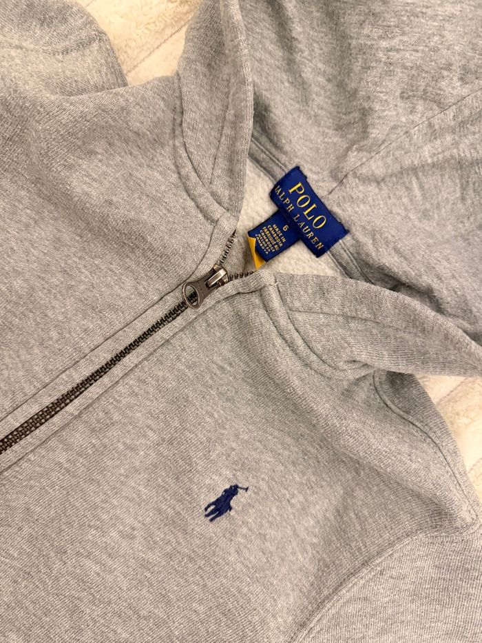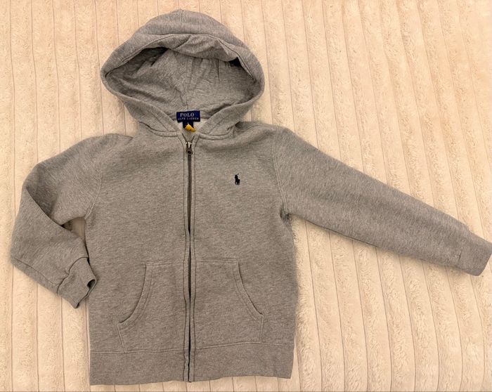 Veste polo Ralph Lauren gris clair, taille six ans. convient pour un 6-7 ans. Peu portée mais légèrement boulochée du au lavage en machine. D’autres vêtements de toutes marques à la vente dans mon dressing enfant et adulte .