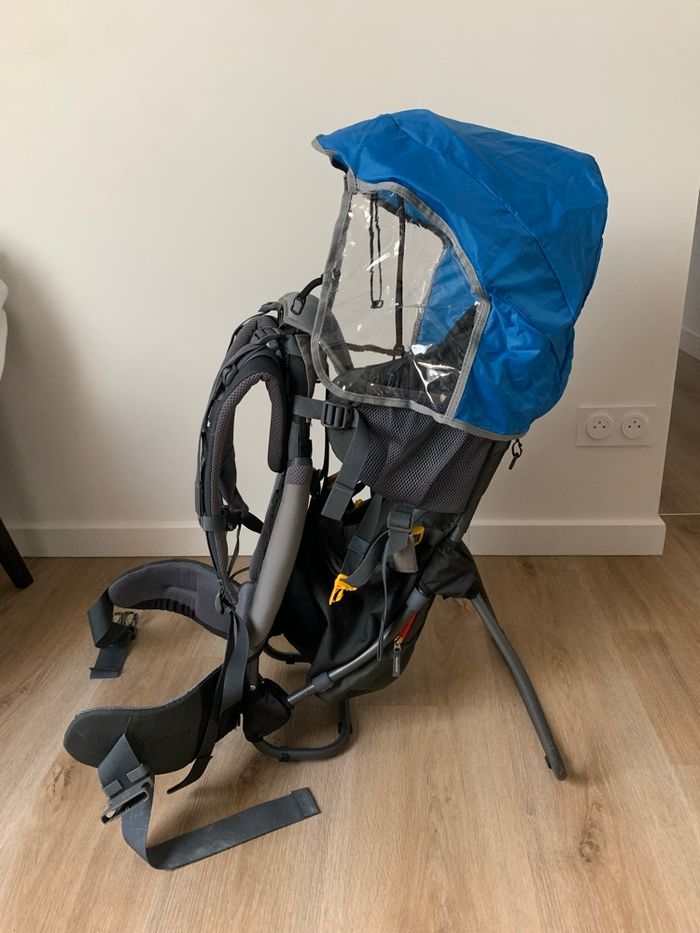 DEUTER a conçu ce porte bébé Kid Confort 1 + pour emmener votre enfant avec vous dans toutes vos randonnées et activités extérieures (poids max enfant: 18kg) Avec son pare-soleil, son siège ajustable et un dos respirant vous randonnerez confortablement et en toute sécurité avec votre bébé. + 1 capuche pluie bleue