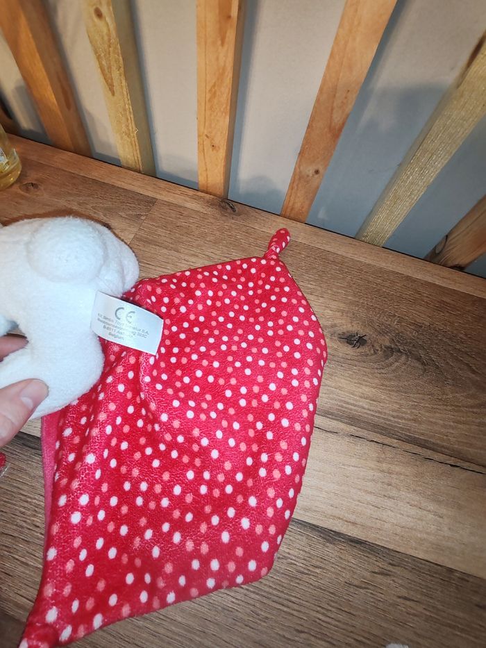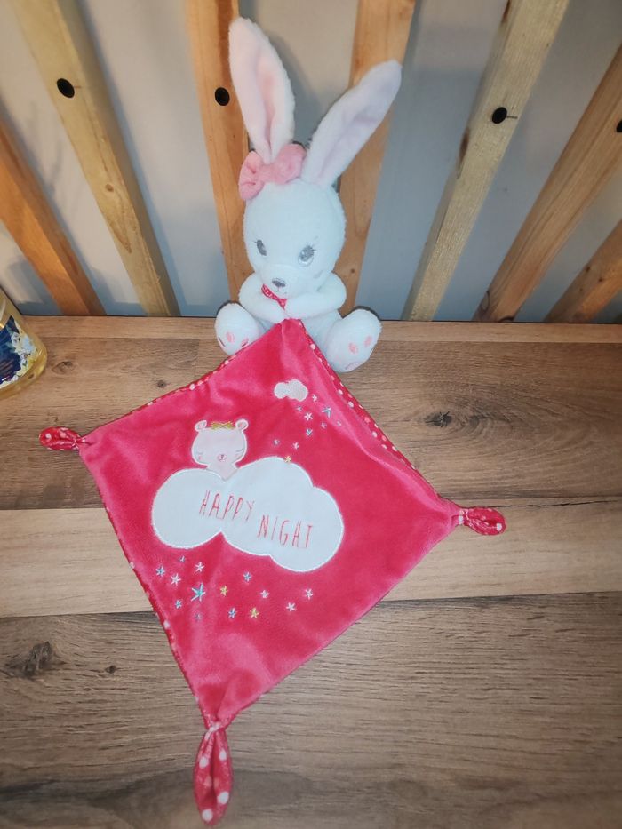 Doudou Lapin blanc rose mouchoir pois Happy Night SIMBA toy Étiquette marque présente 14.90 euros Envoi en relais
