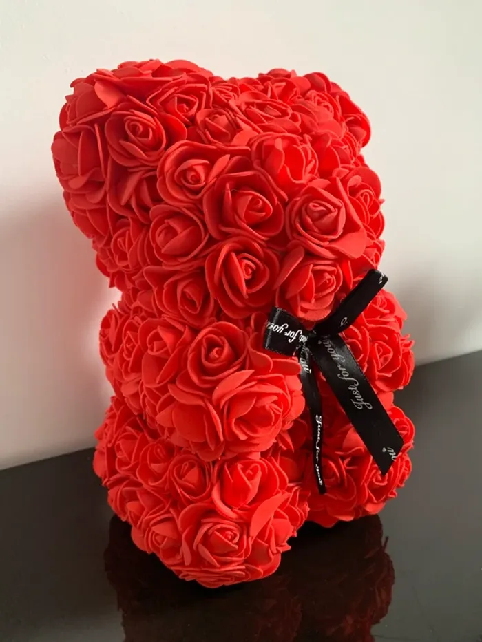 Ourson rouge en roses artificielles Neuf  - photo numéro 1