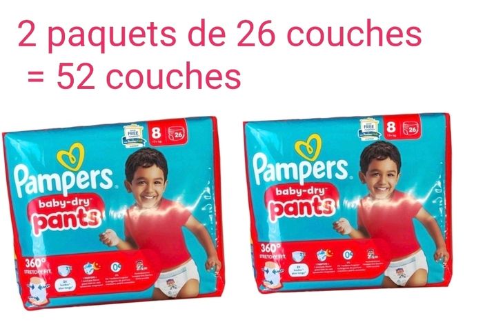 Lot de  52 Couches Pampers Baby Dry  Pants 19 + KG  Taille  8 Neuf - photo numéro 1
