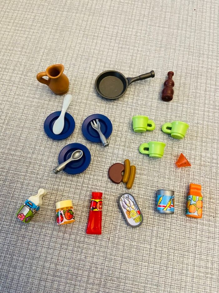 Accessoires de cuisine playmobil Avec assiette verre couverts bouteille Conserve autre Poêle nourriture Idéal pour une maison playmobil ou sylvanian Maison de poupée barbie aussi
