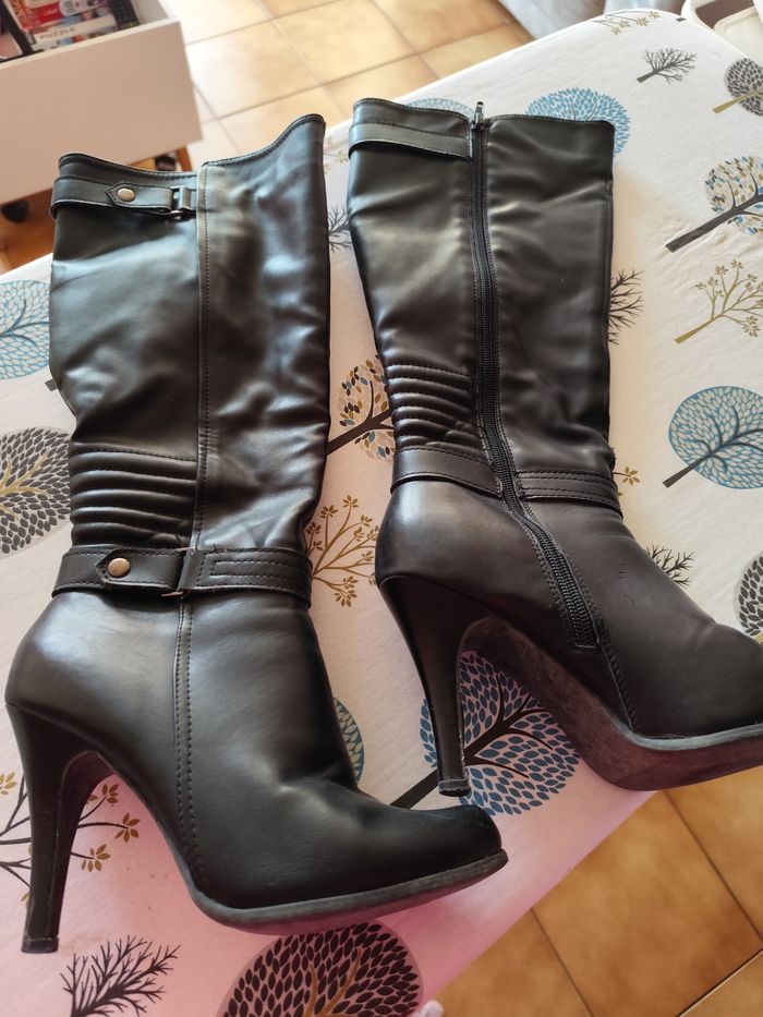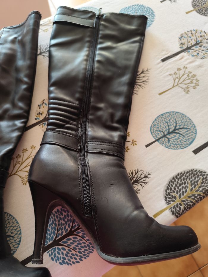 Bottes noires Pointure 37 Talons aiguilles Bon état En cuir N'hésitez pas à regarder mon dressing pour faire un lot