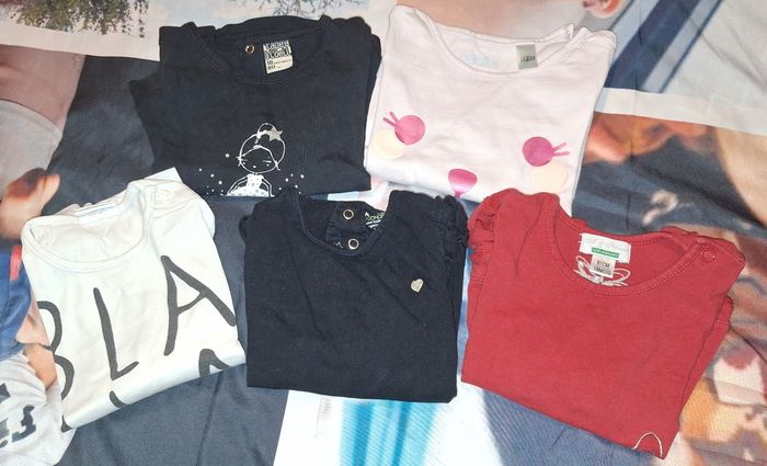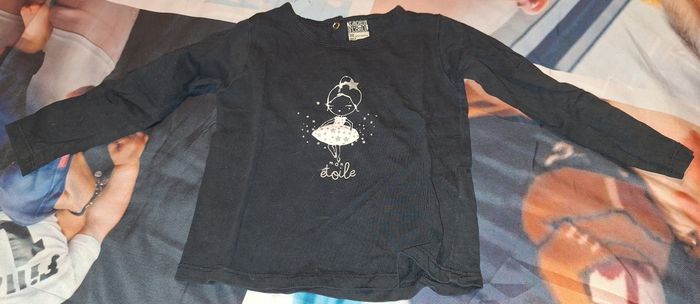 Lot de 5 Tee-shirts manches longues : Un noir avec un dessin de danseuse et inscrit "Mon étoile" Marque Tape à L'œil Un blanc avec un dessin de visage, Marque Obaïbi Un blanc inscrit "Bla Bla Bla piplette" Marque Kiabi Un noir avec un dessin de cœur, Marque Kiabi Un rouge avec un dessin de fleur, Marque Vertbaudet Taille 18 mois / 77-82 cm Très bon état