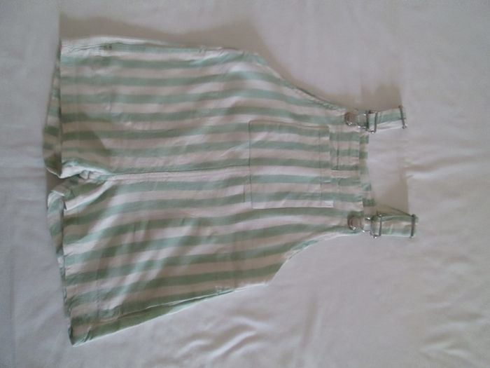 Vends salopette courte rayée verte & blanche Zara. 1 poche sur le devant + 2 poches sur le côté. Bretelles réglables. 55 % lin + 45 % viscose. Taille 86 cm. Très bon état. Pour plus de choix, allez consulter mes autres annonces.