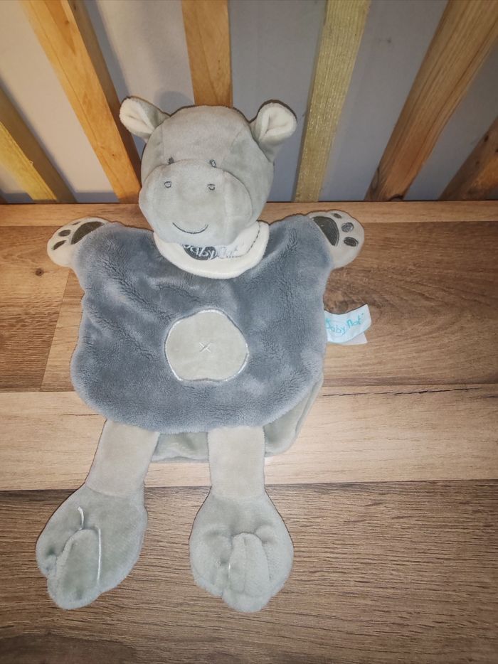 Doudou plat marionnette hippopotame gris Savane BABY NAT Tbe Étiquette marque présente 9.90.euros Envoi en relais