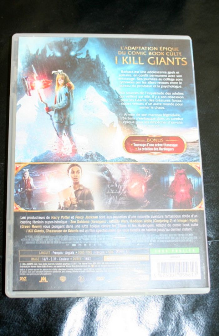 DVD Chasseuse de Géants de Anders Walter avec Madison Wolfe, Zoe Saldana, Imogen Poots, dvd passe parfaitement car visionné avant la mise en vente, 70g Barbara est une adolescente solitaire différente des autres, et en conflit permanent avec son entourage. Ses journées au collège sont rythmées par les allers-retours entre le bureau du proviseur et la psychologue. Aux sources de l’inquiétude des adultes qui veillent sur elle, il y a son obsession pour les Géants, des créatures fantastiques venues d’un autre monde pour semer le chaos.