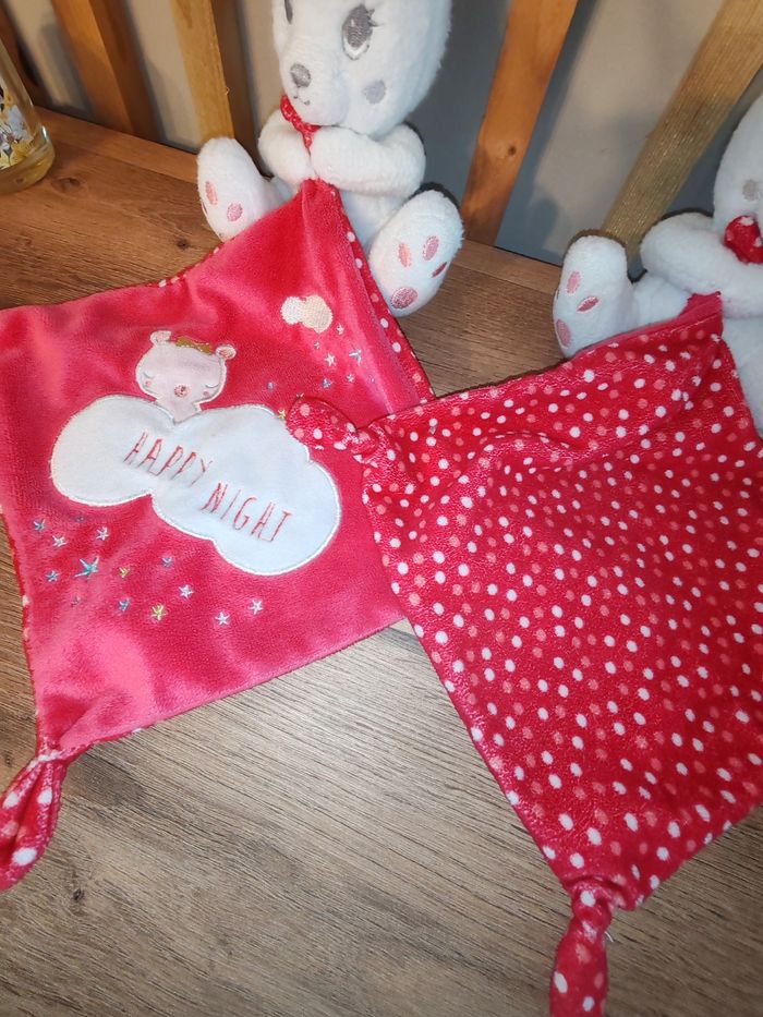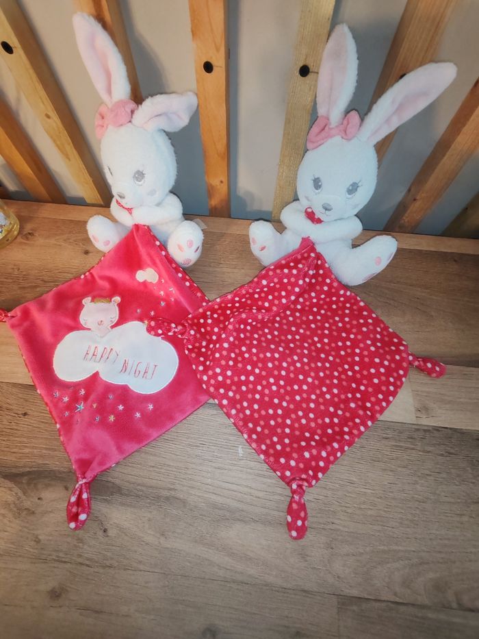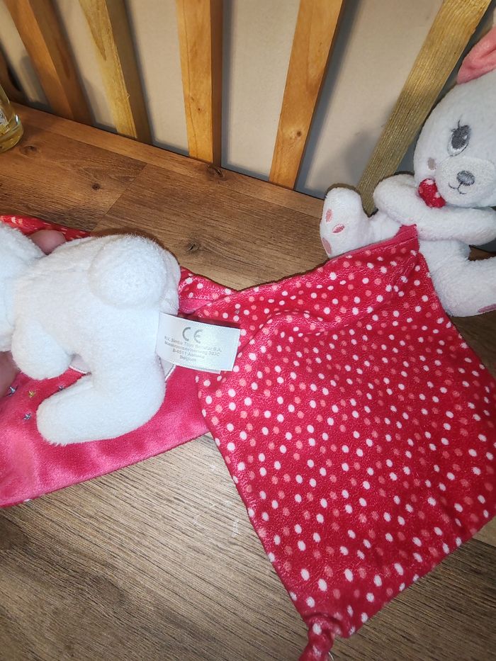 Doudou Lapin Blanc Mouchoir Rose fushia Happy Night Simba toy Étiquette marque présente Sur les 2 25 euros Envoi en relais