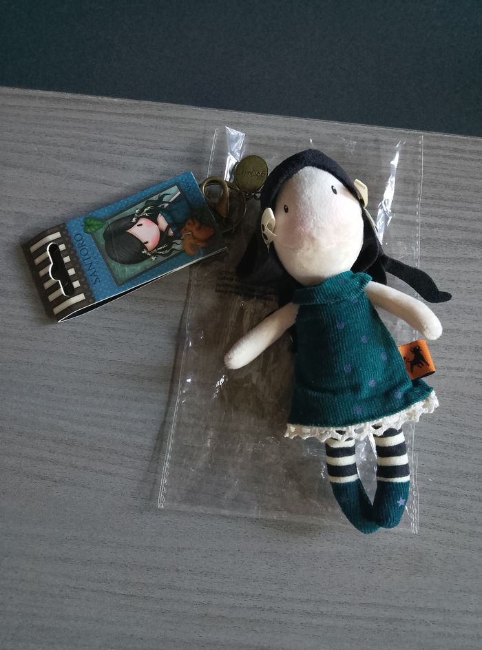 Porte clés en poupée de chiffon en robe bleu canard Marque: Gorjuss Hauteur: 18-20cm Etat: très bon, remis sur l'étiquette