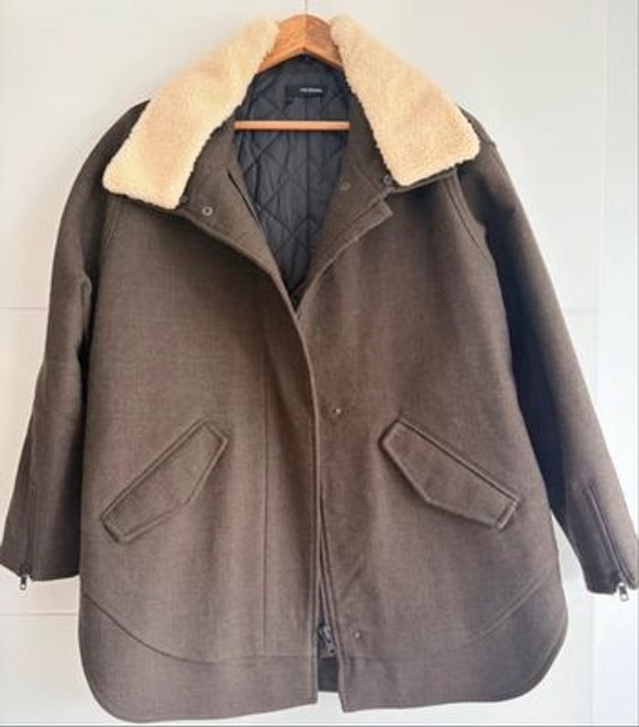 Manteau en très bon état, marron, taille 40, col mouton amovible.