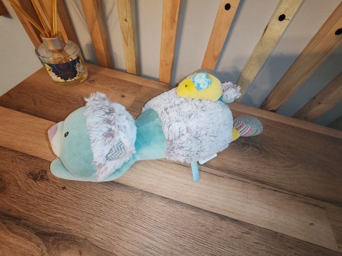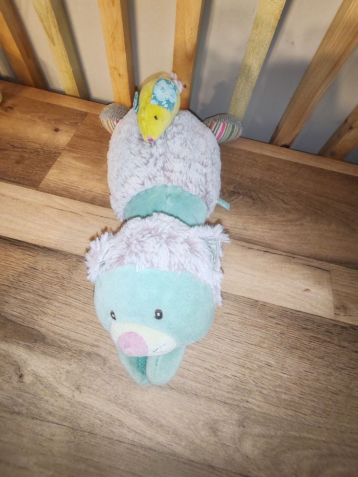 Doudou musical chat bleu gris vert souris les Pachats MOULIN ROTY Tbe La Boîte à musique fonctionne parfaitement 16.90 euros Envoi en relais