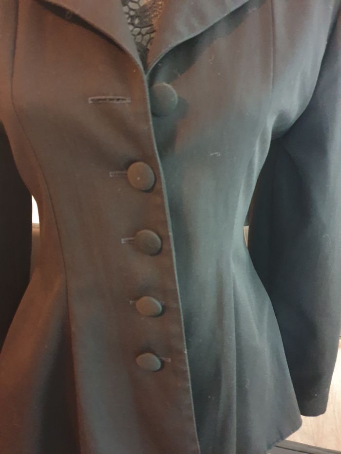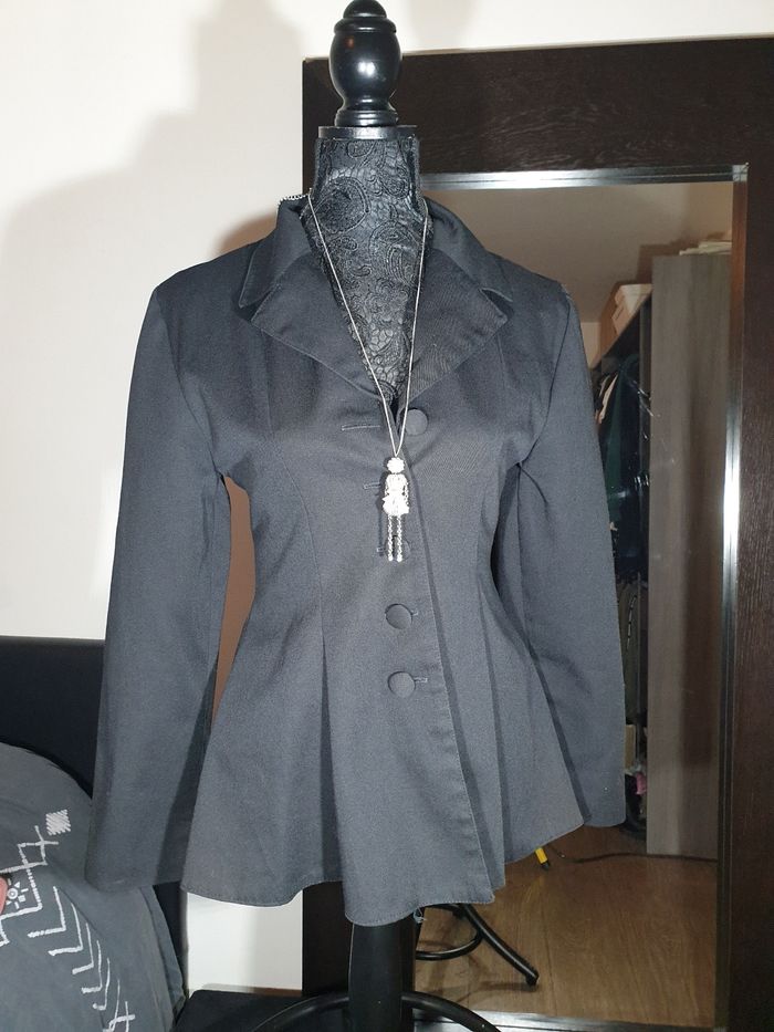 Blazer noir avec des volants sur le bas qui sonne un belle effet taille s "taille petit" en très bon état