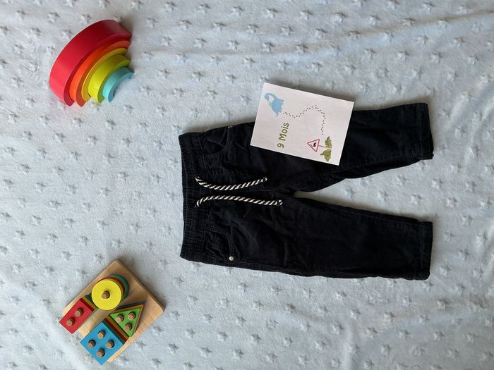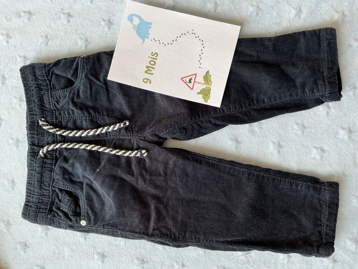 pantalon en velours doublé bleu marine taille élastique lien de serrage 9 mois tape à l'oeil - photo numéro 1
