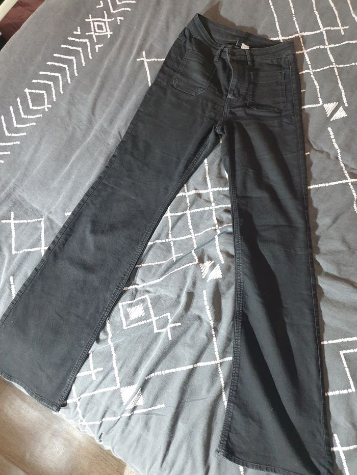 Jean taille haute et large en bas couleur gris/noir pantalon léger taille 36 très bon état