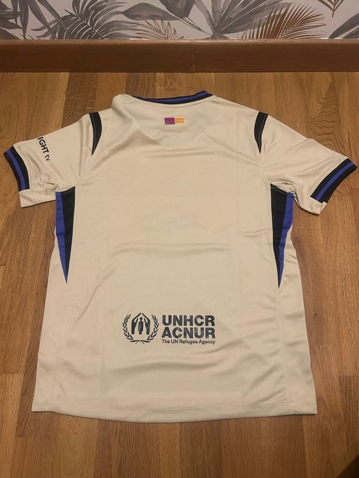 -Maillot officiel FC Barcelona - Nike -Taille S -Neuf sans étiquette -Couleur beige -Très propre, jamais porté -Envoi rapide et soigné -Étiquettes intérieures et collaboration visibles sur les photos. Photos sur mannequin à titre illustratif. Le maillot en vente est bien celui présenté sur les photos réelles. Négociations possibles 😉 N’hésitez pas à me contacter pour toute question 🙂