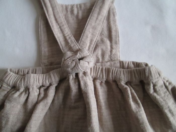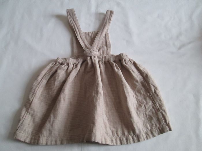 Vends robe Zara. 2 poches sur le devant. Taille élastiquée. Petit nœud décoratif à la base des bretelles dans le dos. 100 % coton. Taille 86 cm. Excellent état. Pour plus de choix, allez consulter mes autres annonces.