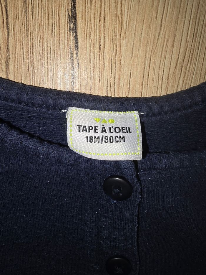 Combishort manches longues, bleu marine. Fermeture pressions à l'entre jambes Tape à l'Oeil Taille : 18 mois, 80 cm Très bon état
