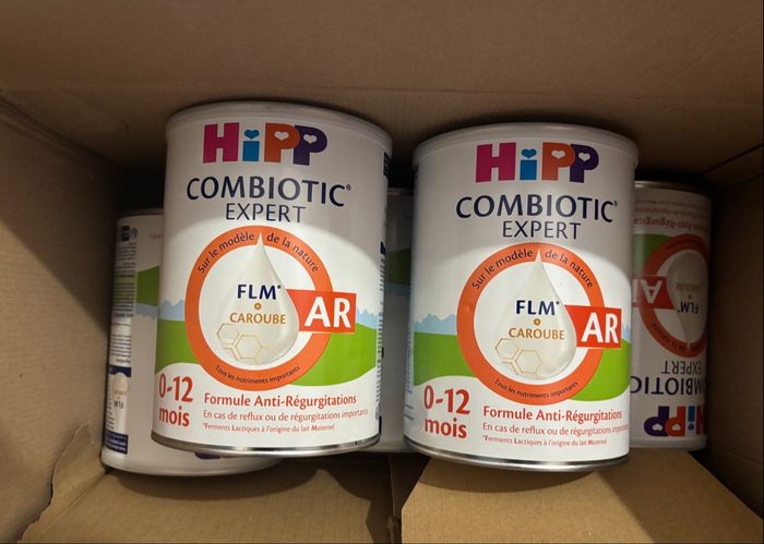 Je vends 5 boîtes de 800g NEUVES ET NON OUVERTES de HIPP Combiotic, en boutique elles valent entre 23 et 25 euros, je les vends 18 euros pièce. C’est un don qui nous a été fait, l’argent ira en direction de l’association Chavabien.