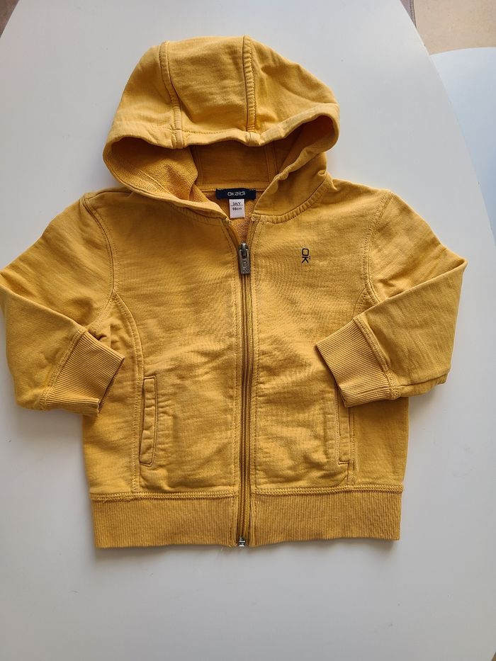 Lot de vêtements 3 ans, composé de : - 1 gilet zippé à capuche réversible Obaïbi - 1 gilet zippé à capuche jaune moutarde Okaïdi - 3 shorts : 2 Obaïbi et 1 Kiabi - 3 débardeurs Vertbaudet Tous les articles sont en excellent état, voire neufs pour certains. Pas de tache ni trou