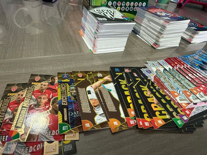 Vend lot de cartes Adrenalyn ligue 1 : 2025/2026 341 cartes de base 63 cartes (totem, ange gardien, diamant, air force, influenceur, expert, crack, megacrack, megacrack excellence, trophée, invincible mythique et édition limitée) Listé sur demande. Le lot est non dissociable. PRIX FERME !!!