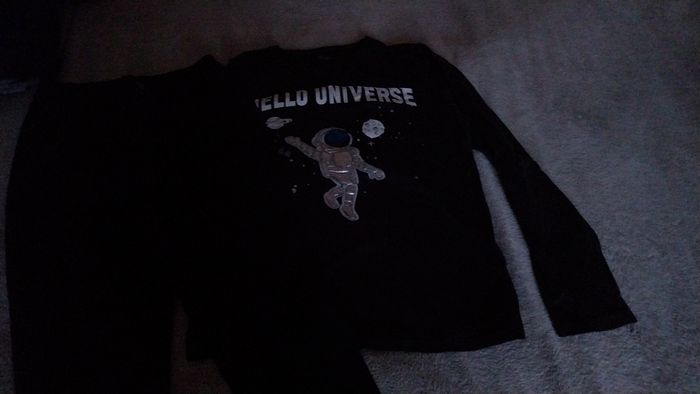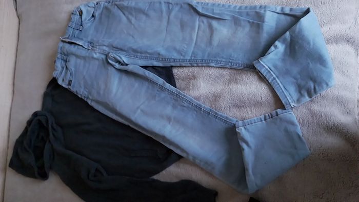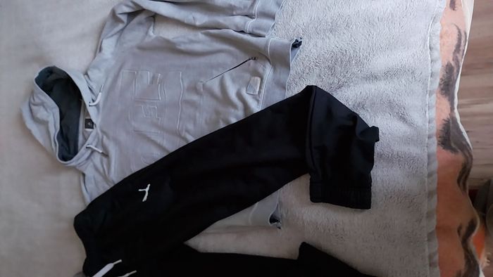 Très bon état dans ce lot oas de tâche vous avez donc : - 3 jeans - 1 tee-shirt manches courtes blanc - 2 tee-shirts manches longues ke orange est moelleux et chsud le noir motif dans l'espace est moins chaud - 1 pull rouge de sport moulant et bien chaud en lycra - 1 sweat a capuche gris foncé ORCHESTRA - 1 aweat epais gris clair marque Firefly - 1 sweat a capuche bleu NPO - 1 bas jogging noir matière de sport Pyma - 1 bas jogging gris clair en gros molleton marque QUICSLIVER il a 1 jleger trou jambe droite vers le haut sinonnil est nickel Le tout pour 15 euros -