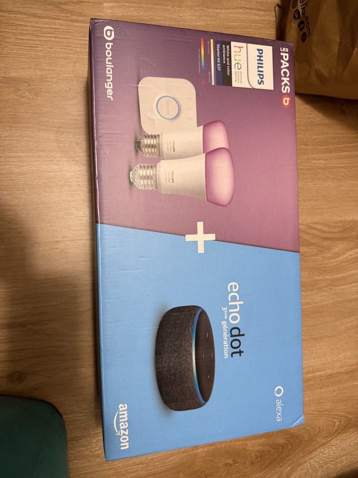 NEUF un excellent pack sur l’enceinte connectée Amazon, l’Echo Dot 3 ainsi que 2 ampoules Philips Hue et un pont afin de tout relier en simplicité. Avec ce dernier, vous pourrez contrôler toutes vos lumières connectées depuis votre voix, faire varier leur intensité et les relier avec d’autres appareils de votre domicile.