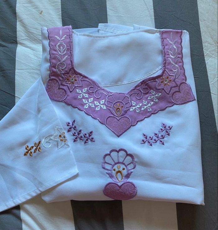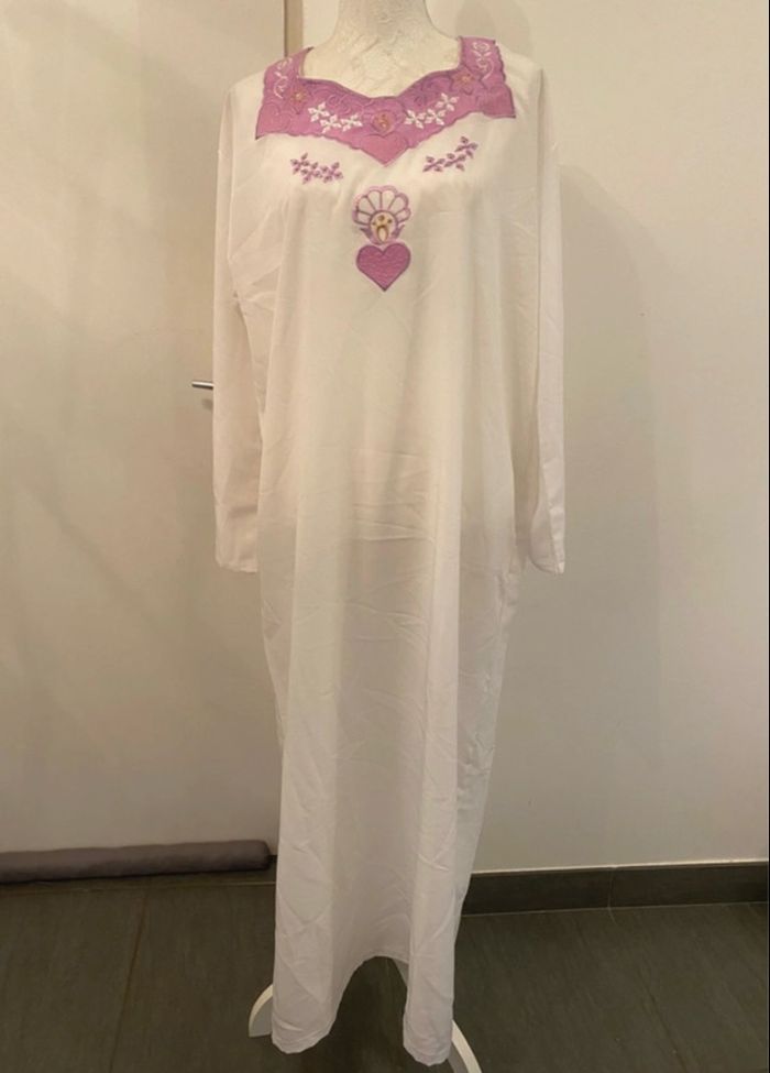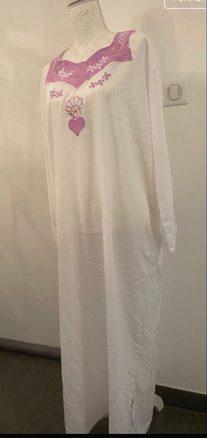 Robe longue oriental, inspirée du style abaya ou gandoura, se distingue par son élégance épurée et ses détails artisanaux. ✅ manche brodé 📐taille XL - convient un 44-46 🧼État: porté 1 fois, quasi neuf