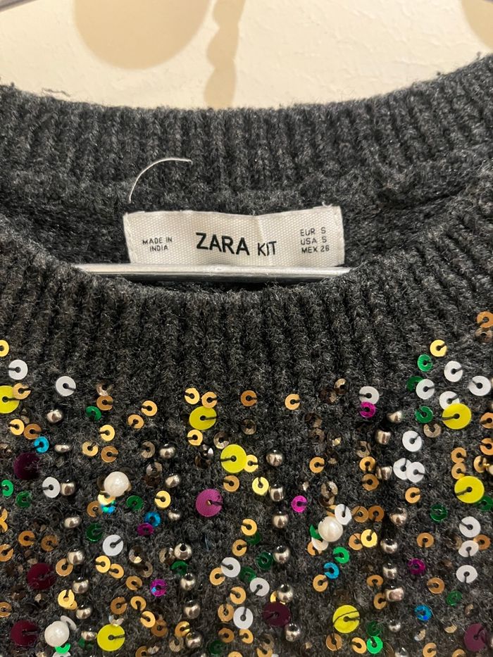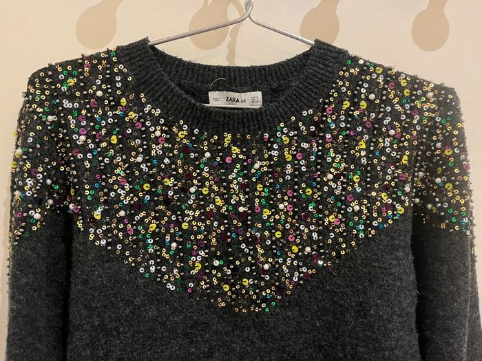 Pull gris manches ballons pailletés zara knit taille S/36 - photo numéro 9