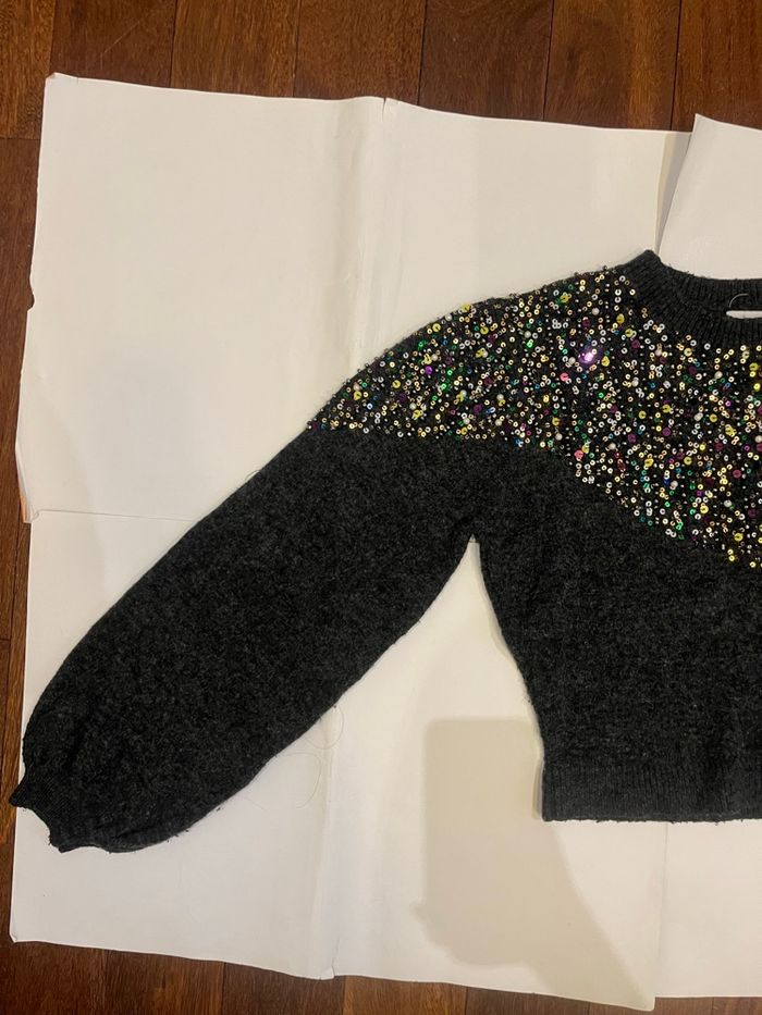 Pull gris manches ballons pailletés zara knit taille S/36 - photo numéro 6