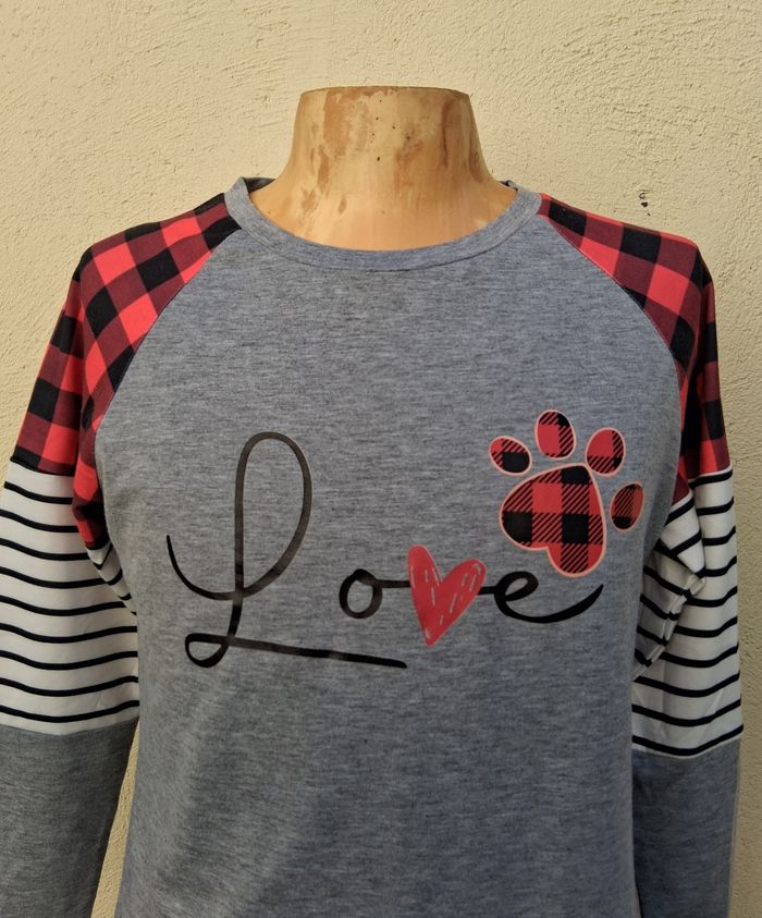 Vend jolie T-shirt manche longue Pour femme Taille S ( chinois) En bon état Logos LOVE + patte de chat 🐱 devant