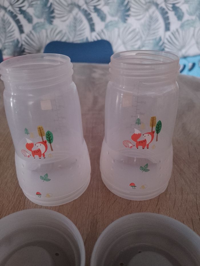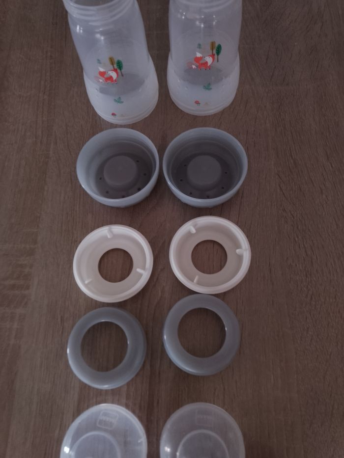 Lot de 2 biberons mam anti-coliques . Capacité 260 ml N'a jamais été au micro-ondes ni au lave-vaisselle .