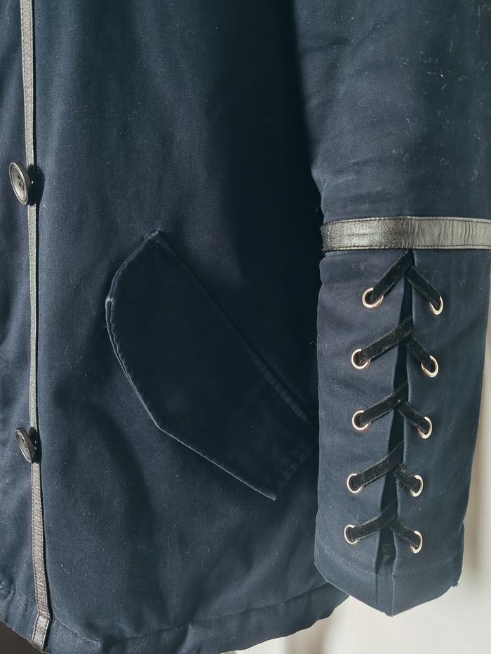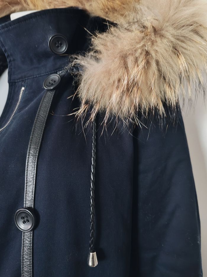 Manteau Maje femme T38  noir/bleu capuche bordée de fourrure  - photo numéro 7