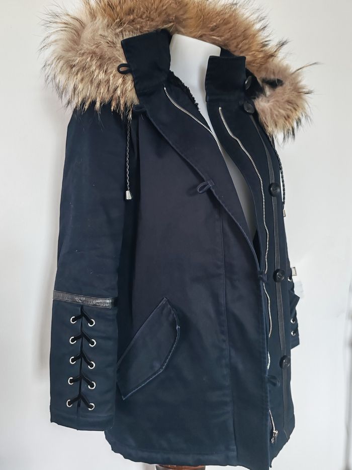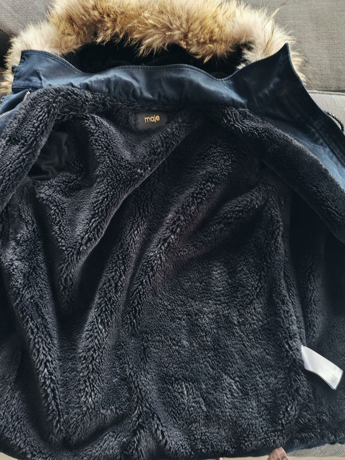 Manteau Maje femme T38  noir/bleu capuche bordée de fourrure  - photo numéro 1