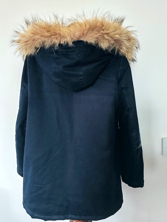 Manteau Maje femme T38  noir/bleu capuche bordée de fourrure  - photo numéro 9