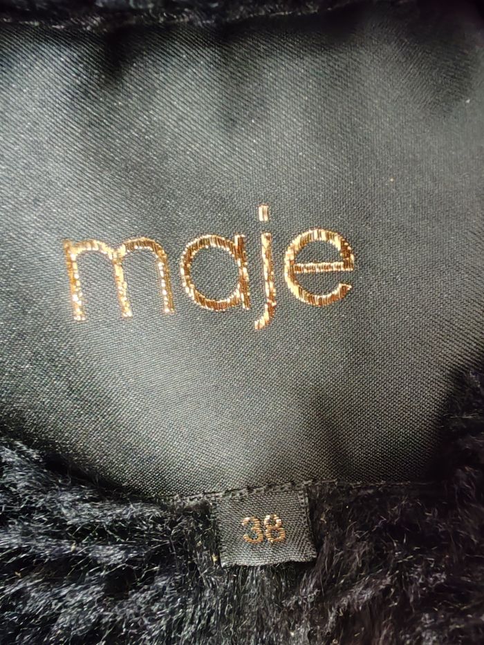Manteau Maje femme T38  noir/bleu capuche bordée de fourrure  - photo numéro 10