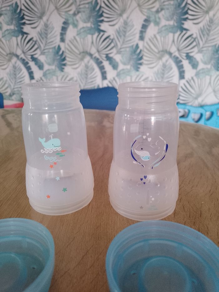 Lot de 2 biberons mam anti-coliques . Capacité 260 ml N'a jamais été au micro-ondes ni au lave-vaisselle .