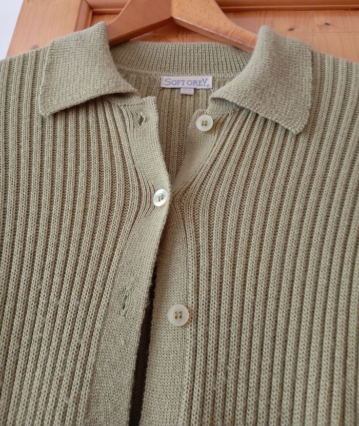 Veste couleur verte taille 38/40, marque "Soft Crey", boutonné devant avec une ceinture. Parfait état.